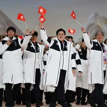 霍启刚作为身为团长,和中国香港代表团一起出场,笑着就走出来了,超级喜庆。