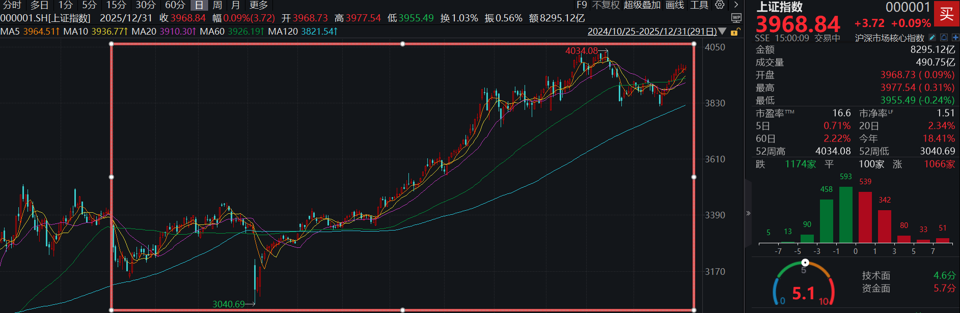 2025年,沪指报收3968.84点,全年收涨18.41%,年内时隔十年重回4000点;创业板指全年大涨49.57%。